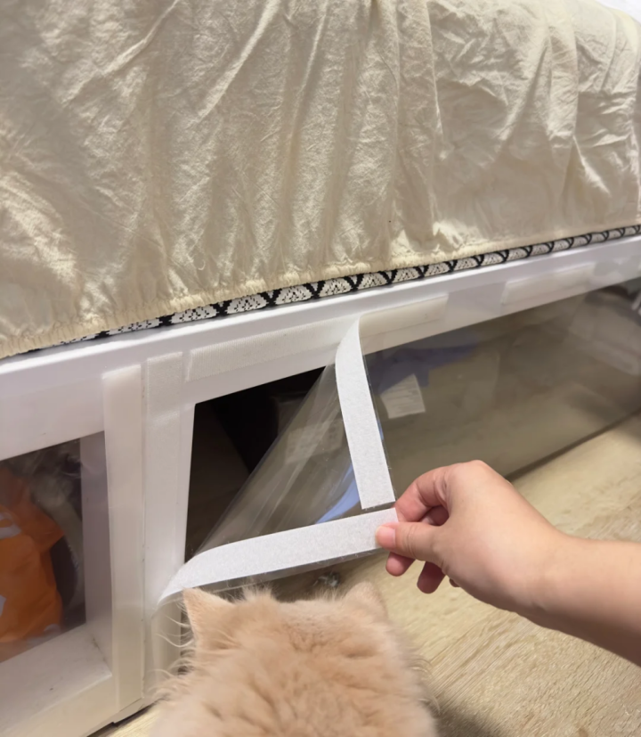 这个床底PVC防尘挡板搭配魔术贴,直接把灰尘挡在外面!