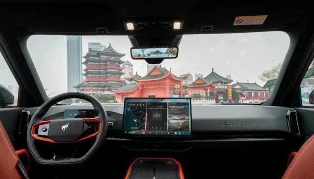 进入车内,座舱设计风格简约、硬派,并提供赤沙橙、密林绿等四款配色可选。以2.5K高清15.6英寸Mini-LED中控屏搭配实体旋钮,兼顾了科技感与操作便捷性。此外,其座椅牛皮面料则选自南美洲优质牧场,触感细腻、缝线工艺精致,尽显品质感。在智能化方面,智趣烈马搭载5nm高通8255芯片,并支持豆包+DeepSeek双AI语音系统,交互流畅、响应迅速。此外,的辅助驾驶系统基于NVIDIA双Orin-X智驾芯片打造。