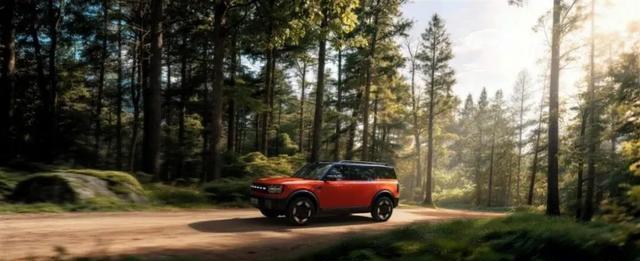 福特智趣烈马在外观设计上成功地将家族硬派基因与新能源时代的科技感相融合。延续了福特烈马系列的硬朗风格,前脸采用封闭式格栅设计,中央镶嵌了可点亮的“BRONCO”字母标识,极具辨识度。车身侧面,采用悬浮式车顶设计,搭配隐藏式门把手以及前后微隆起的无喷漆材质轮眉,越野属性十足,车尾部分,采用简洁的竖向尾灯组设计,搭配全新样式的轮辋以及外挂式备胎设计,底部带有大面积的黑色包围,整体非常硬派。